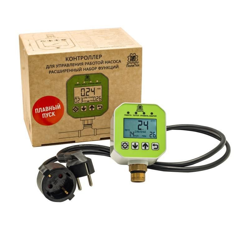 Контроллер давления микропроцессорный 1/2 расширенный 1Мпа с питающим кабелем (зеленый) Политех