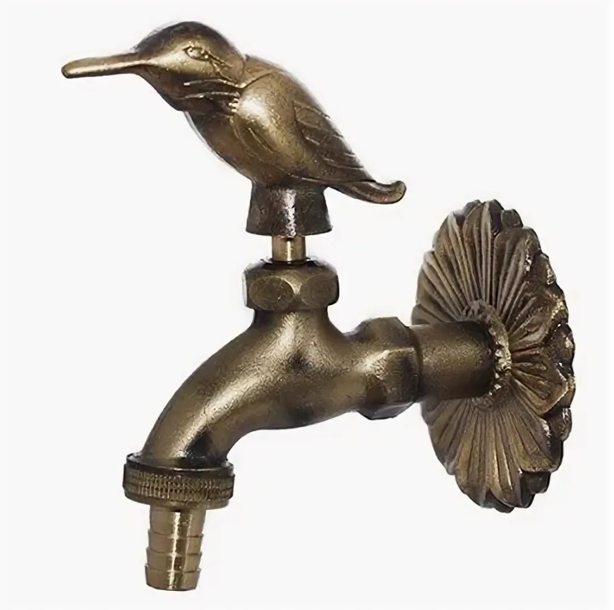Кран водоразборный 1/2" бронза декор колибри